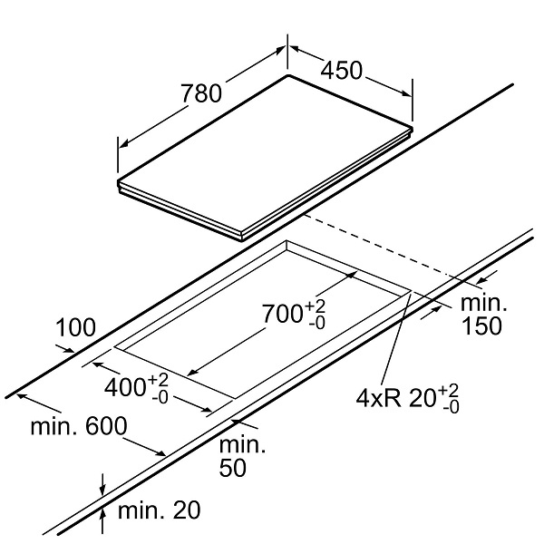 Kích thước lắp đặt (Cao x Rộng x Sâu): 59 x (700-702) x (400-402) (mm)