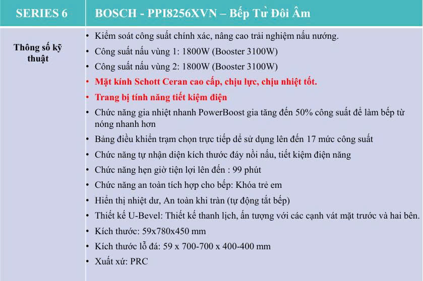 BẾP TỪ BOSCH PPI8256XVN | SERIE 6 | 78CM | MÀU ĐEN | THIẾT KẾ BO VIỀN SANG TRỌNG | AN TOÀN, BỀN BỈ VÀ TIẾT KIỆM ĐIỆN NĂNG