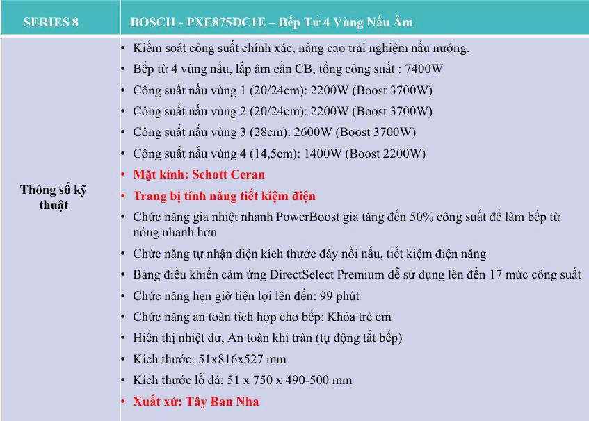 - Mẫu bếp từ Bosch này có tổng công suất 7400W.