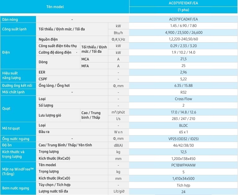 Máy Lạnh Âm Trần Samsung Inverter 1 Hướng Thổi 2.5 Hp AC071FE1DKF/EA