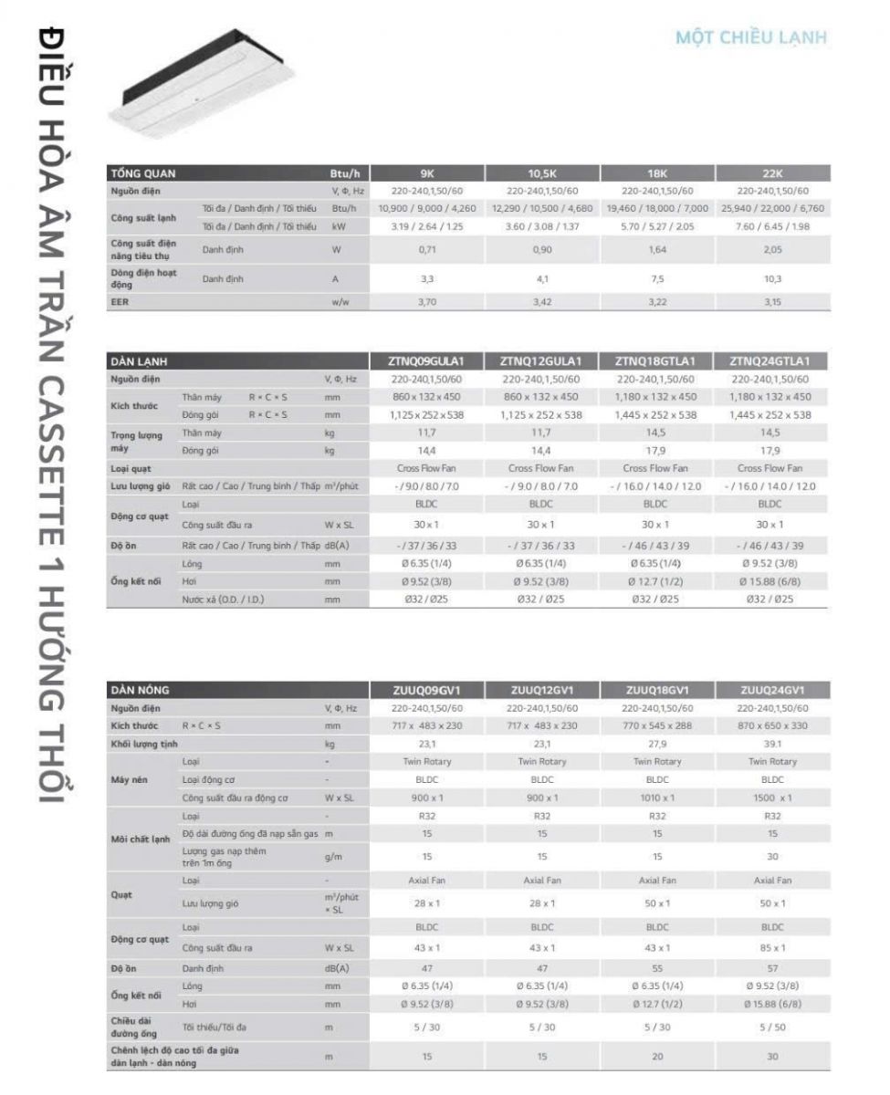 Máy lạnh Cassette 1 hướng thổi LG ZTNQ18GTLA1/ZUUQ18GV1 Inverter 2HP