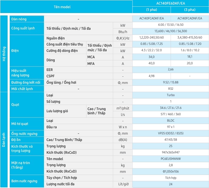 Máy lạnh Cassette Inverter Samsung 5 Hp WindFree™ 360 AC140FE6DKF/EA-Gas R32