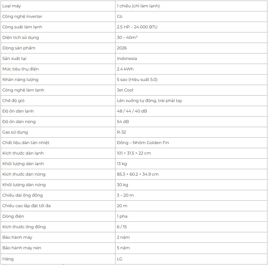 Vì sao nên chọn Điều hòa LG 24000BTU IFC24M1 1 chiều Inverter 2026?