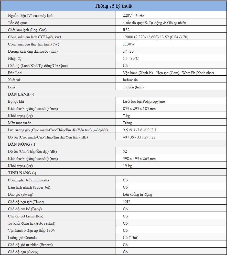 Thông sỗ kỹ thuật