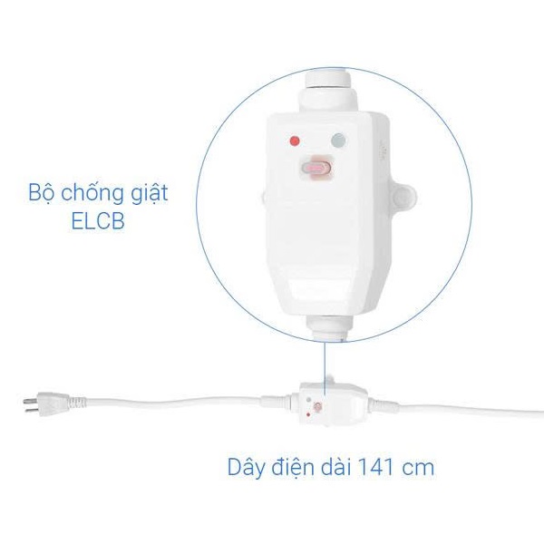 + Cầu dao chống rò điện ELCB: Ngắt kết nối giữa máy nước nóng và mạch điện khi có hiện tượng rò rỉ điện. Nhờ đó giúp phòng chống cháy nổ và bảo vệ an toàn cho người dùng tốt hơn.