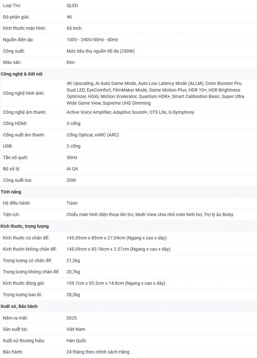 Tích hợp nhiều công nghệ hình ảnh hiện đại như Quantum Dot, Color Booster Pro, Quantum HDR+, 4K AI Upscaling...
