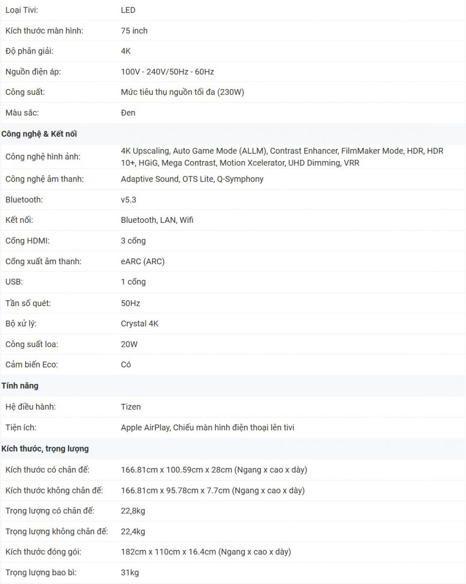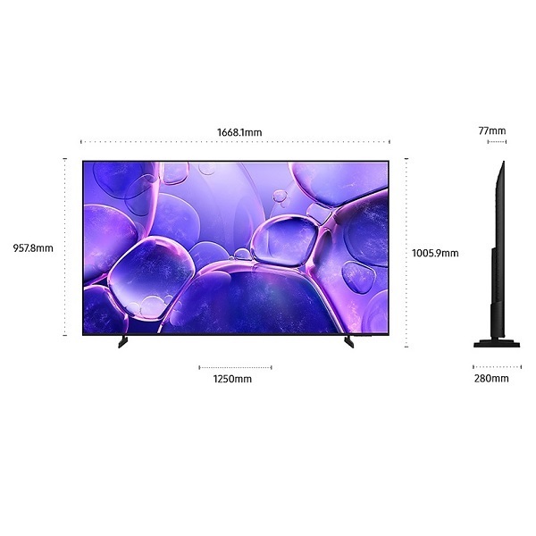 Kích thước màn hình 75 inch cho bạn đắm chìm trong mọi nội dung giải trí, phù hợp với các căn phòng rộng.