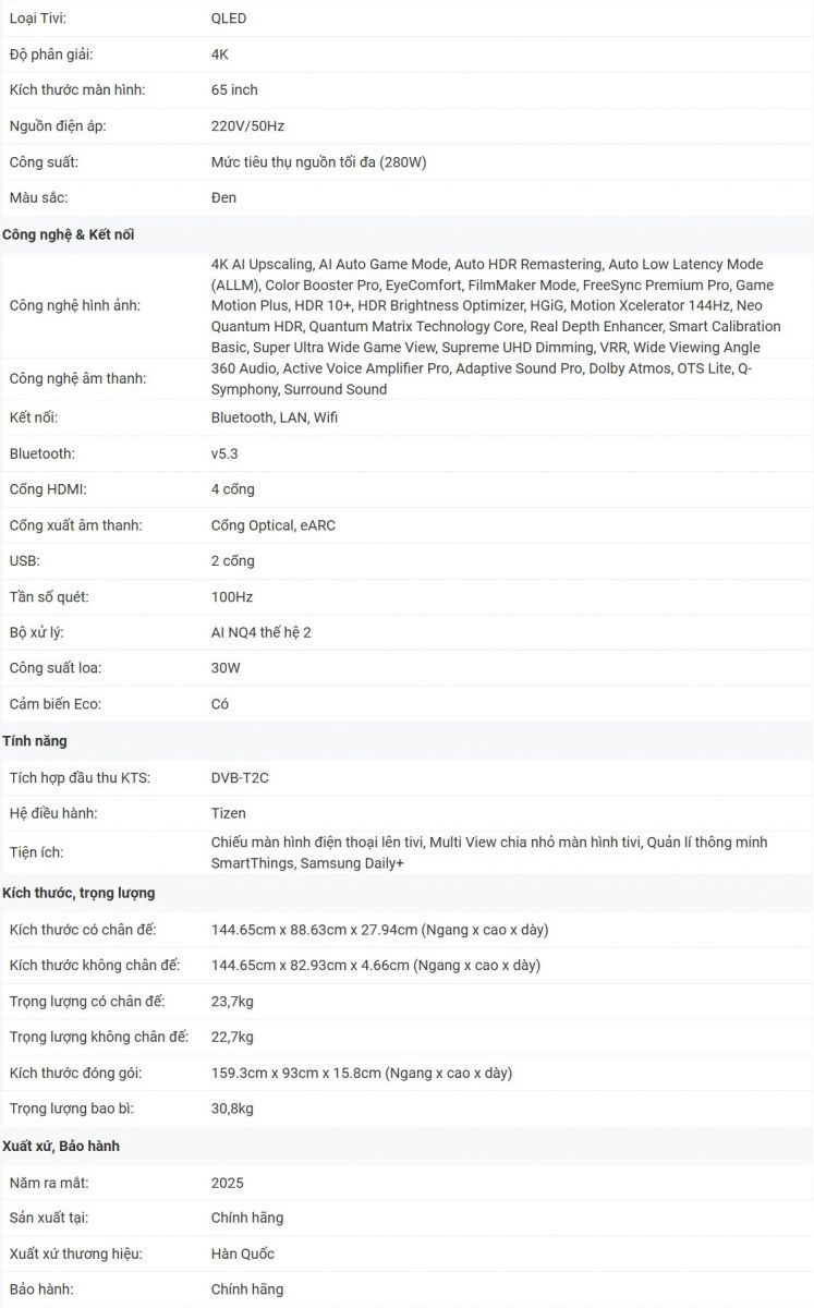 Công nghệ Quantum HDR+: Công nghệ này có khả năng phân tích từng cảnh để cải thiện độ sáng, độ tương phản nhằm đem lại những khung hình có sắc màu sống động, chi tiết phong phú và trải nghiệm điện ảnh tốt hơn.