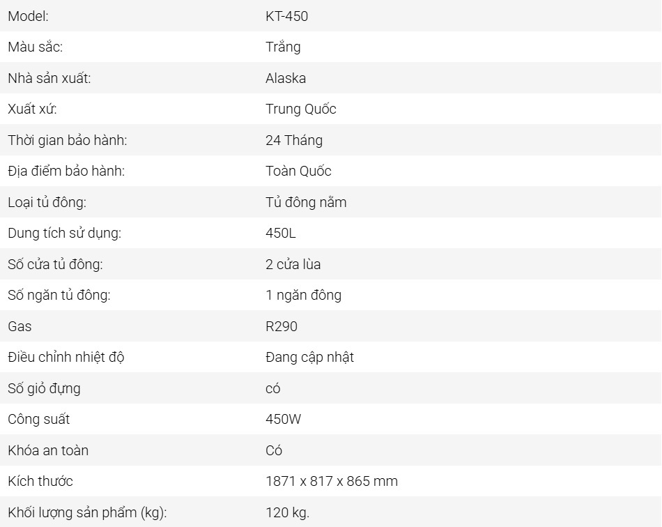Tủ Đông Alaska 450 Lít KT-450 là sản phẩm tủ đông có nắp kính cỡ lớn. Đây phiên bản mới của model SC-700Y được nhiều siêu thị lớn, cửa hàng hải sản lựa chọn,… để bảo quản, trưng bày sản phẩm. Với một ngăn làm đông, mẫu mã đẹp, kiểu dáng phù hợp với không gian trưng bày.
