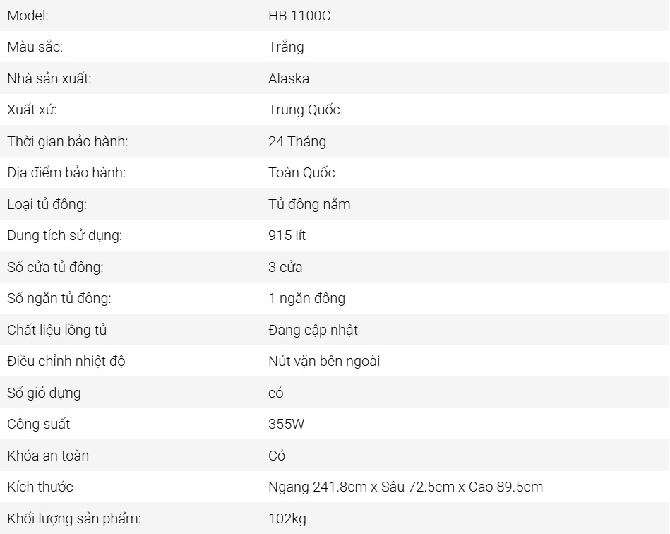 Đánh giá chi tiết tủ đông 3 cánh Alaska HB-1100C
