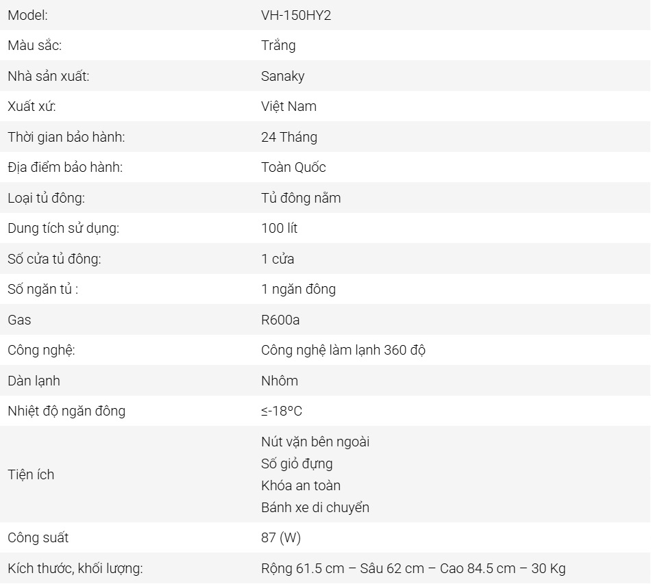 Tủ Đông Sanaky 100 Lít VH-150HY2 – Công nghệ hiện đại, bảo quản thực phẩm vượt trội