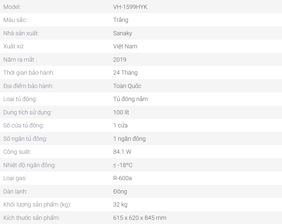 Như vậy, có thể thấy tủ đông Sanaky 100 lít VH-1599HYK này rất hữu ích cho các gia đình sử dụng có nhu cầu dự trữ thực phẩm vừa, hoặc những quán ăn nhỏ cần bảo quản và chế biến thực phẩm nhanh chóng.