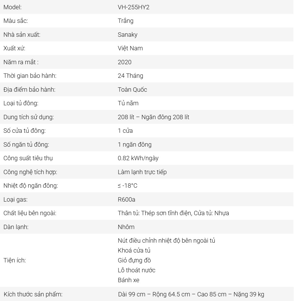 Tủ đông SANAKY 208 Lít TD.VH255HY2 - Tiện ích