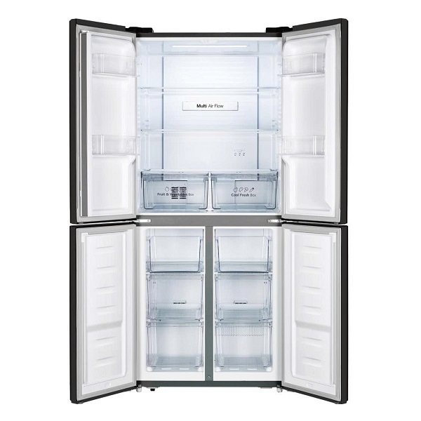 Kiểu tủ Multi Door 4 cánh mang lại sự tiện lợi khi sử dụng, cho phép mở từng khu vực riêng biệt, hạn chế thất thoát hơi lạnh so với kiểu tủ truyền thống. Thiết kế này đồng thời giúp phân chia không gian lưu trữ rõ ràng, dễ sắp xếp thực phẩm.