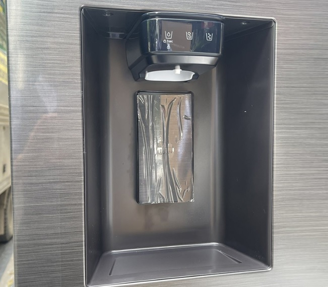Ngăn lấy nước và đá được thiết kế ngay trên cửa, không chứa BPA giúp người dùng có thể thưởng thức nước lạnh hoặc đá viên mà không cần mở tủ, tiết kiệm thời gian và điện năng. Bình chứa nước có dung tích lớn lên tới 4.5 lít, đáp ứng nhu cầu sử dụng liên tục.