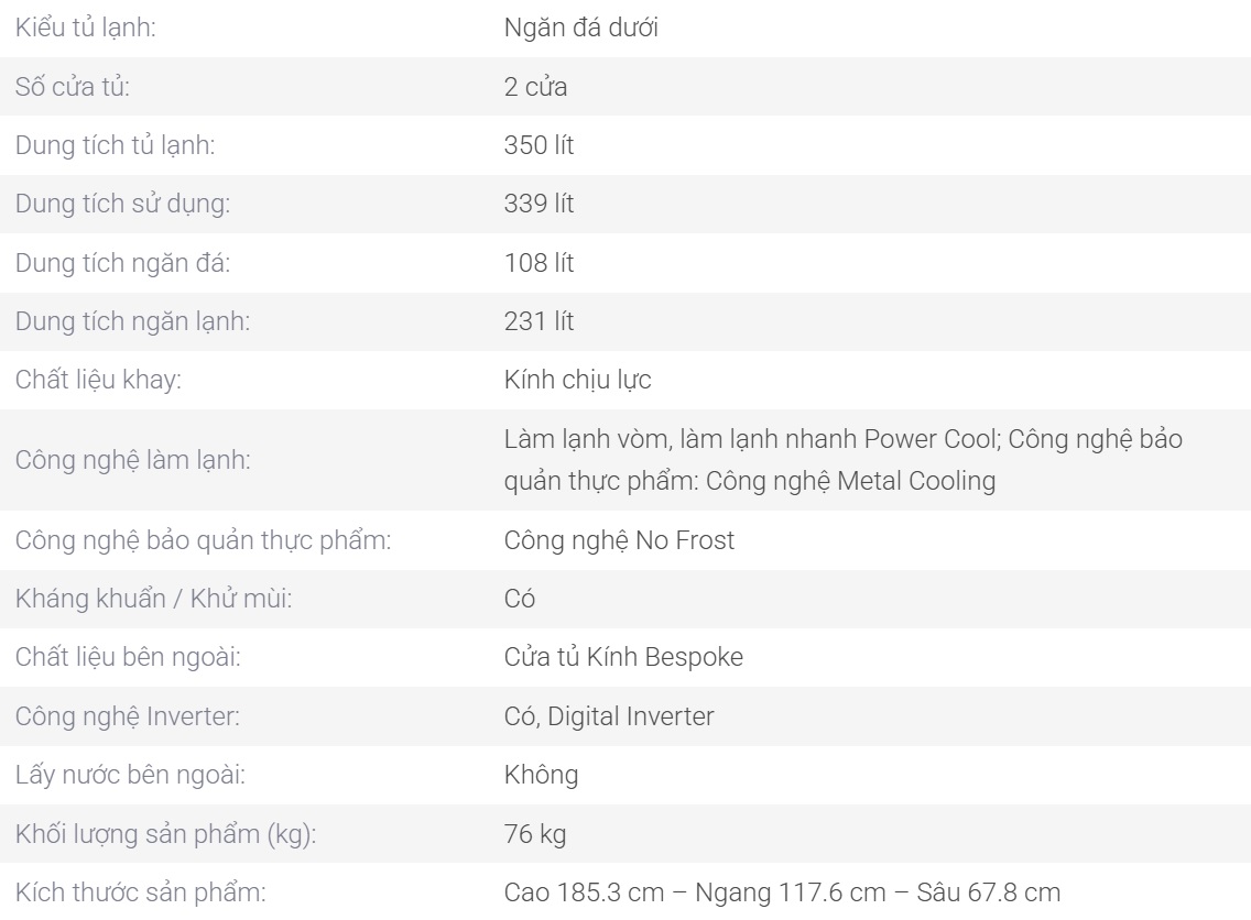 Ưu điểm nổi bật của tủ lạnh Samsung Bespoke RB33T307029/SV 339 lít
