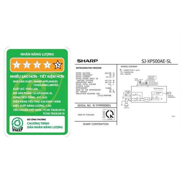 Tủ lạnh Sharp Inverter 471 lít SJ-XP500AE-SL